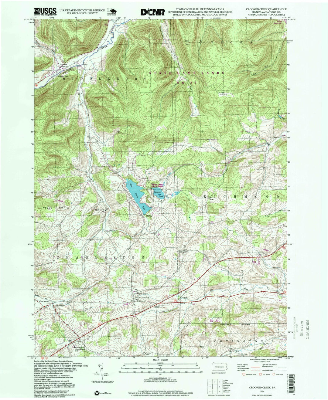 Classic USGS Crooked Creek Pennsylvania 7.5’x7.5′ Topo Map